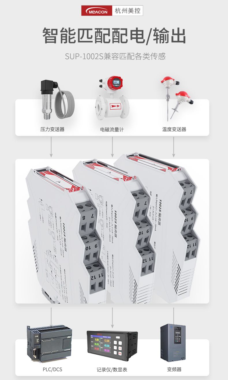 本产出输入电阻/电偶/毫伏信号,经过隔离 1:1 输出。输入端、输出端及电源端三端隔离。本产品为智能化设计,具备传统产品所不具备的多种功能。内部采用了数字化调校、无电位器、自动零点校准等先进技术。可与各类仪表及 DCS、PLC 配套使用。