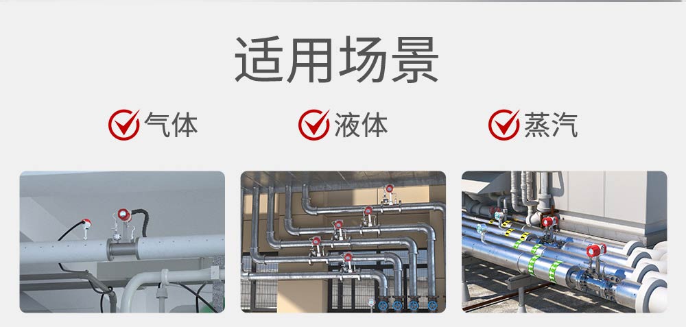 本款涡街流量计,广泛应用于压缩空气和蒸汽流量的计量,也可测量含有微小颗粒、杂质的浑浊液体,广泛应用于石油、化工、制药、造纸、冶金、电力、环保、食品等行业。