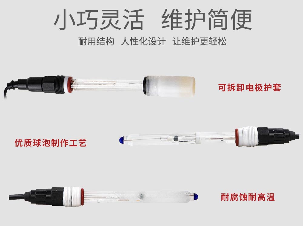 pH 玻璃电极是由玻璃指示电极和银/氯化银参比电极组合在一起的复合电极,作为 pH 值测量传感器广泛应用于测量水溶液中的 pH 值。使用场景:特殊环境,比如化学在线、强酸强碱环境。