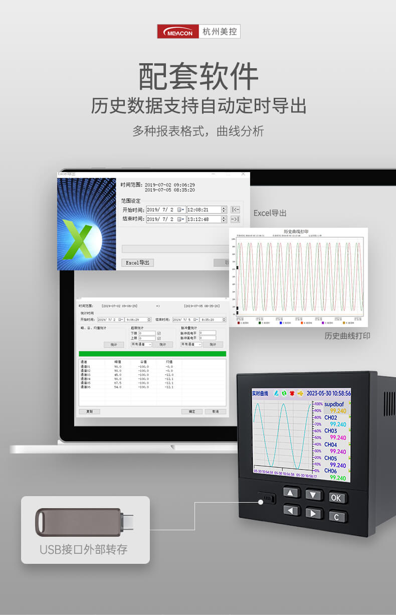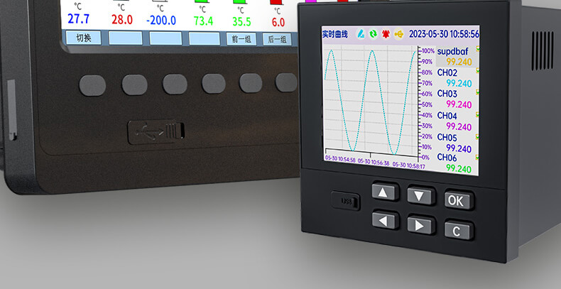 本产品为工业无纸记录仪,配置 3.5 英寸 TFT 真彩全视角液晶显示屏。可以接入多种类型的电流、电压、热电偶和热电阻等工业标准信号,实现温度、湿度、压力、液位、流量的显示、记录、超限监控、报表、数据通讯、信号变送以及流量累积、流量温压补偿等功能。可应用在冶金、石油、化工、建材、造纸、电力、食品、制药、工业水处理等各个行业。