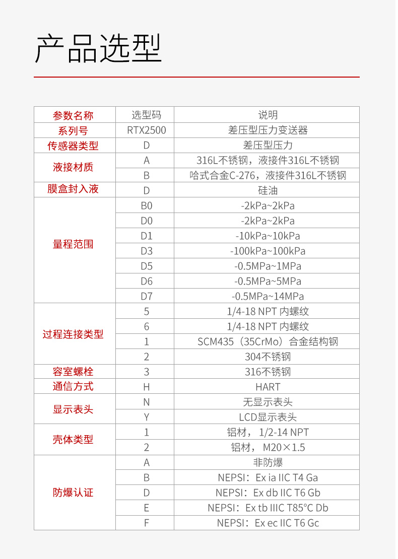 RTX2500压力变送器可具有多样化组态功能,自带的三按键对变送器进行组态调整,可设置如阻尼时间,恒流输出、报警选择、显示单位、置零、以及传感器检测等,亦可通过HART进行组态,可实现远程监控和访问。是工业压力变送器是石油、石化、环保、电力、冶金、煤化工等行业压力测量应用的理想选择。